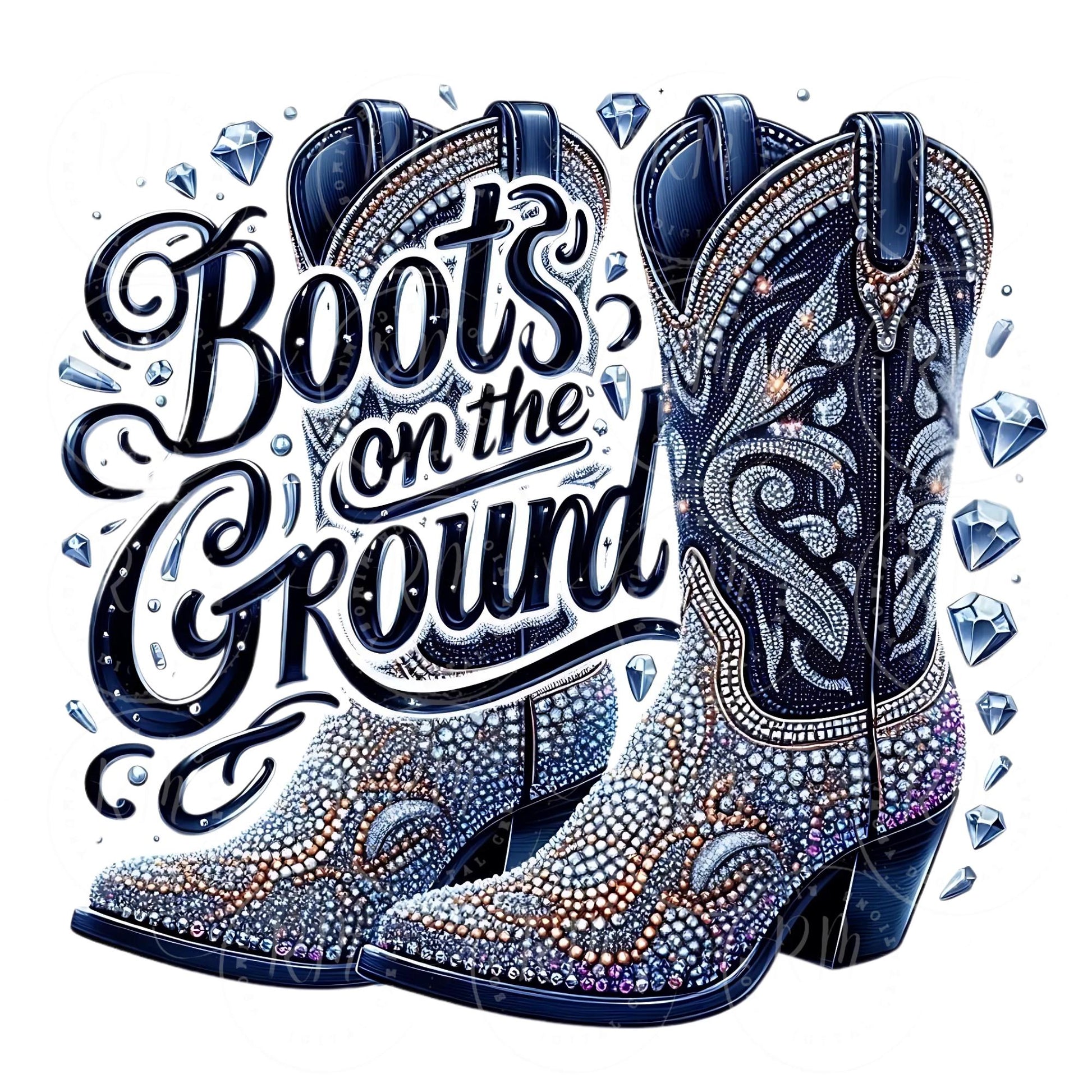 Boots on the Ground PNG, Rhinestone Cowgirl Boots Graphic Design, Unique Western Design, Artwork for Prints, Tshirts, DIYs, Shirt Clipart
