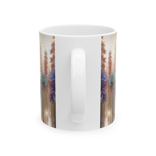Floral Elegance Ceramic Mug - 11oz, Coffee Cup for Nature Lovers, Beautiful long stem pastel florals, Mother's Day Gift, Gift for Her