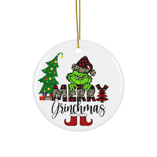 Merry Grinchmas Christmas Ornament, Holiday Ornament, Round Christmas Ornament, Snowflake Christmas Ornament, Holiday Grinchmas Ceramic Ornament