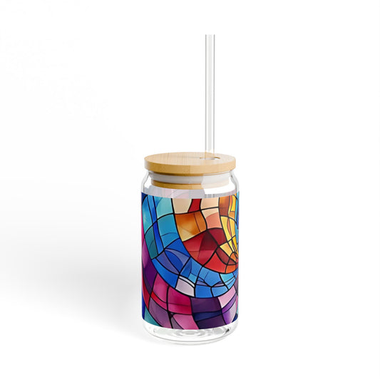 Stain Glass Sipper Glass, 16oz - Eco-Friendly Drinkware with Bamboo Lid, Colorful, Kitchen Decor, Gift for Her, Glass Tumbler, Unique