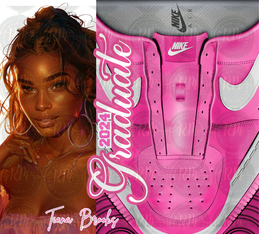 Shoelace Graduation Editable Pink and White Canva Tumbler Template