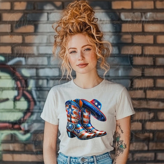 Stars & Stripes Cowgirl Boots PNG: 4th of July Western Graphic (Digital Download