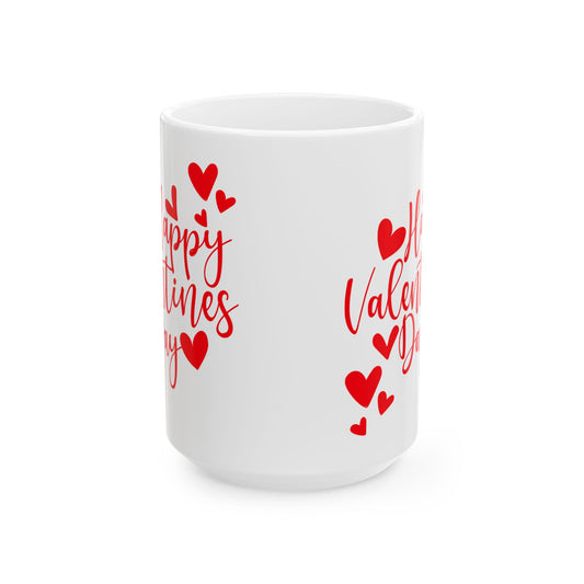 Valentine's Day Ceramic Mug, Red and White Valentine's Mug, Happy Valentine's Day Coffee Cup, Love Heart Tea Mug, Valentine's Day Gift Mug,