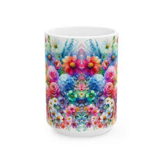 Vibrant Floral Ceramic Mug - Colorful Garden Coffee Cup for Spring, Gift for Flower Lovers, Home Decor, Mother's Day, Birthday