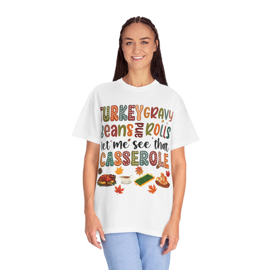 Comfort Colors® Thanksgiving T-Shirt, Turkey Gravy Beans and Rolls Let Me See That Casserole T-Shirt, Thanksgiving Dinner, unisex shirt, 5 color choices, plus sizes