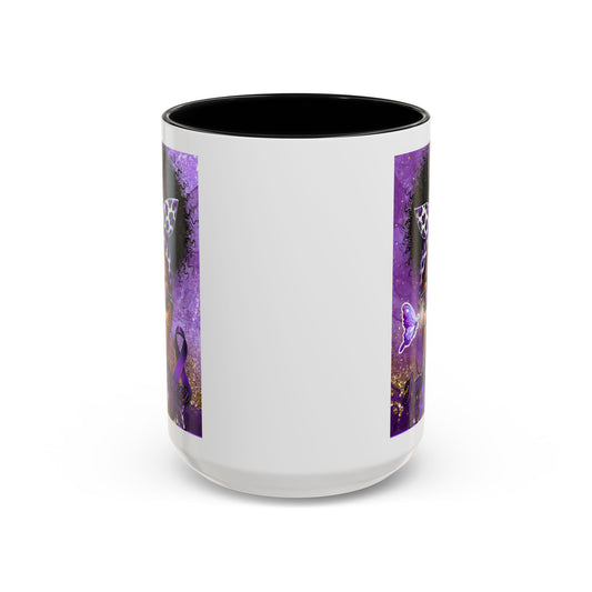 Coffee Mug Pancreatic Cancer Warrior African American Female Butterfly 15oz Cup, Gift for Cancer Survivor Awareness Advocate, Chemotherapy
