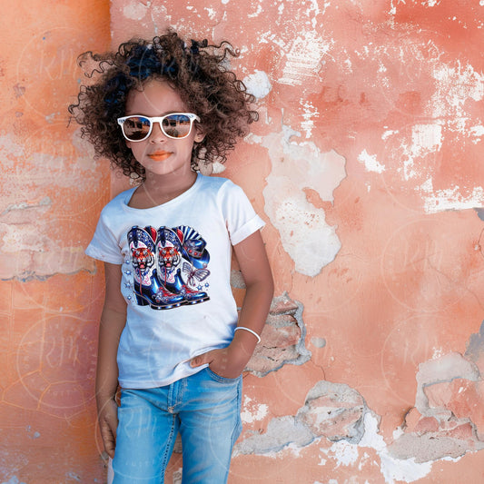 Boots on the Ground Clipart, Western Cowgirl Boots Clipart, Red, White& Blue Tiger PNG, Unique JSU Design, Hat and Fan Graphic Design