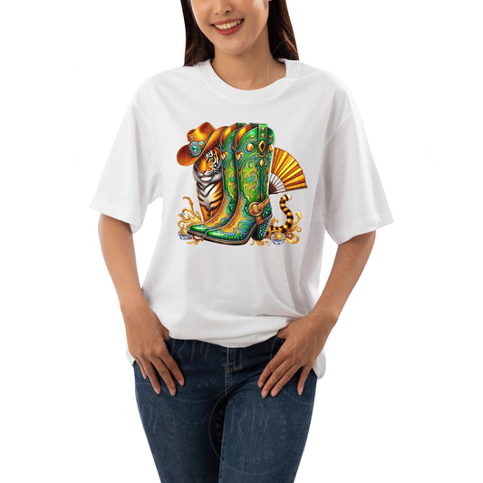 Boots on the Ground PNG, Yellow and Green Rhinestone Cowgirl Boots Graphic Design, Unique Western Tiger Design, Artwork for Prints, Tshirts
