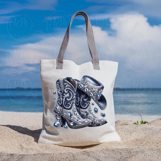 Boots on the Ground PNG, Denim Rhinestone Cowgirl Boots PNG, Western Boots Graphic Design for Tshirts & Prints, Unique Cowboy Clipart