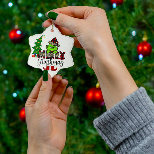Merry Grinchmas Christmas Ornament, Holiday Ornament, Round Christmas Ornament, Snowflake Christmas Ornament, Holiday Grinchmas Ceramic Ornament