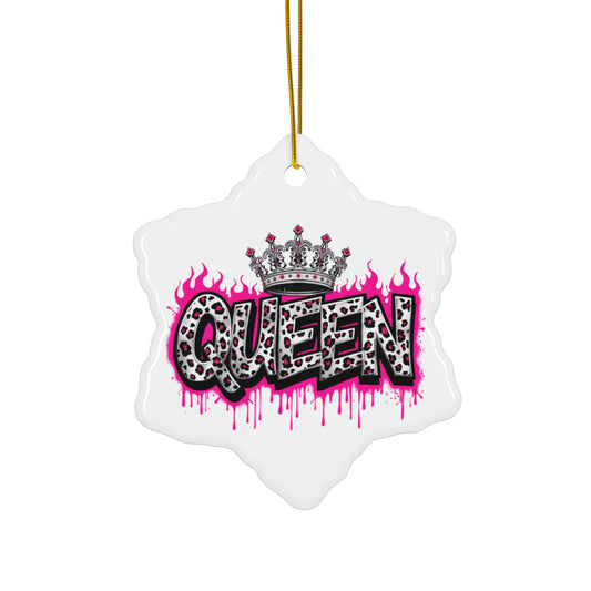 Ceramic Ornament, Holiday Decor, Pink Queen Leopard Print, Gift For Her, Gift Idea, Winter Home Decor, Festive Ornament, Holiday Gift