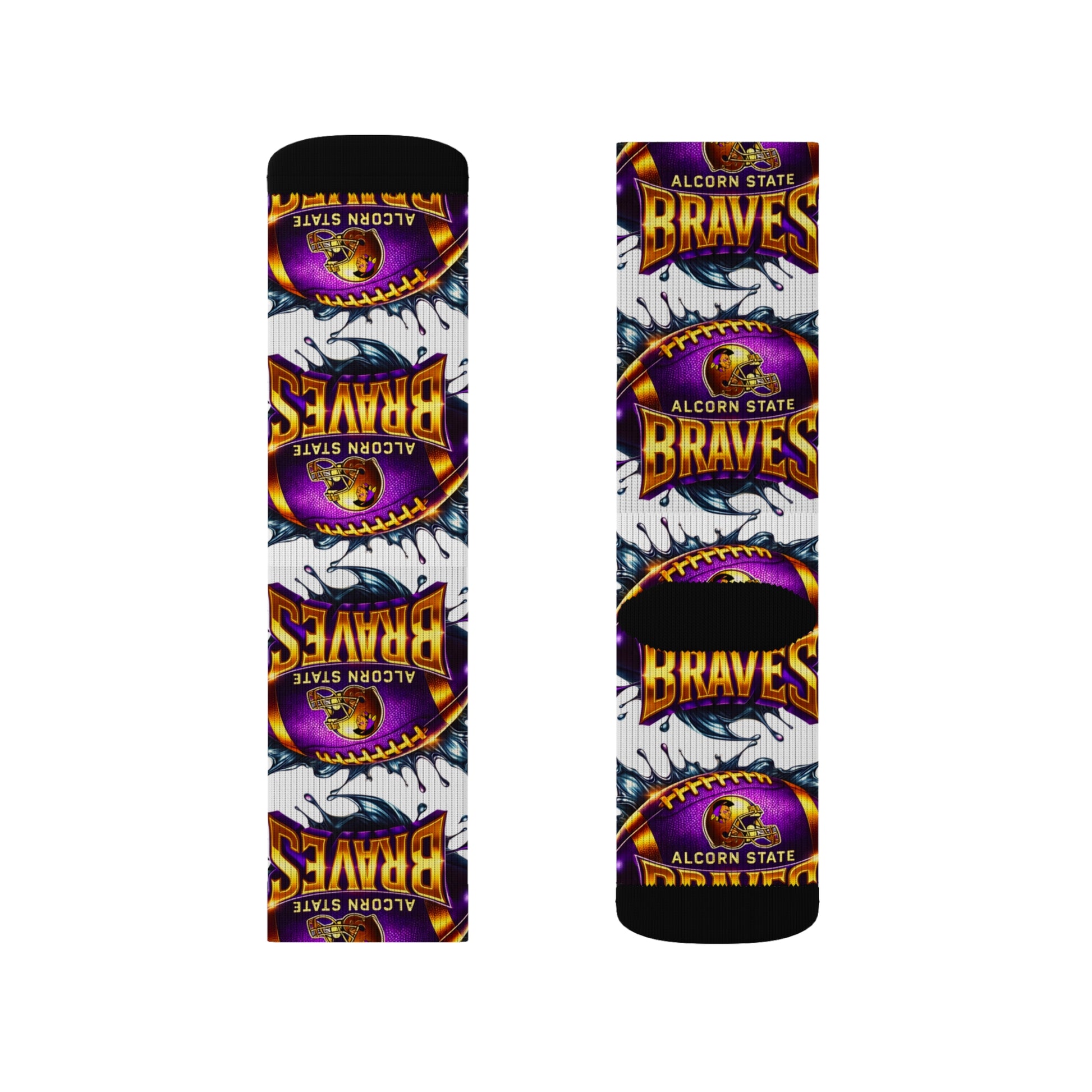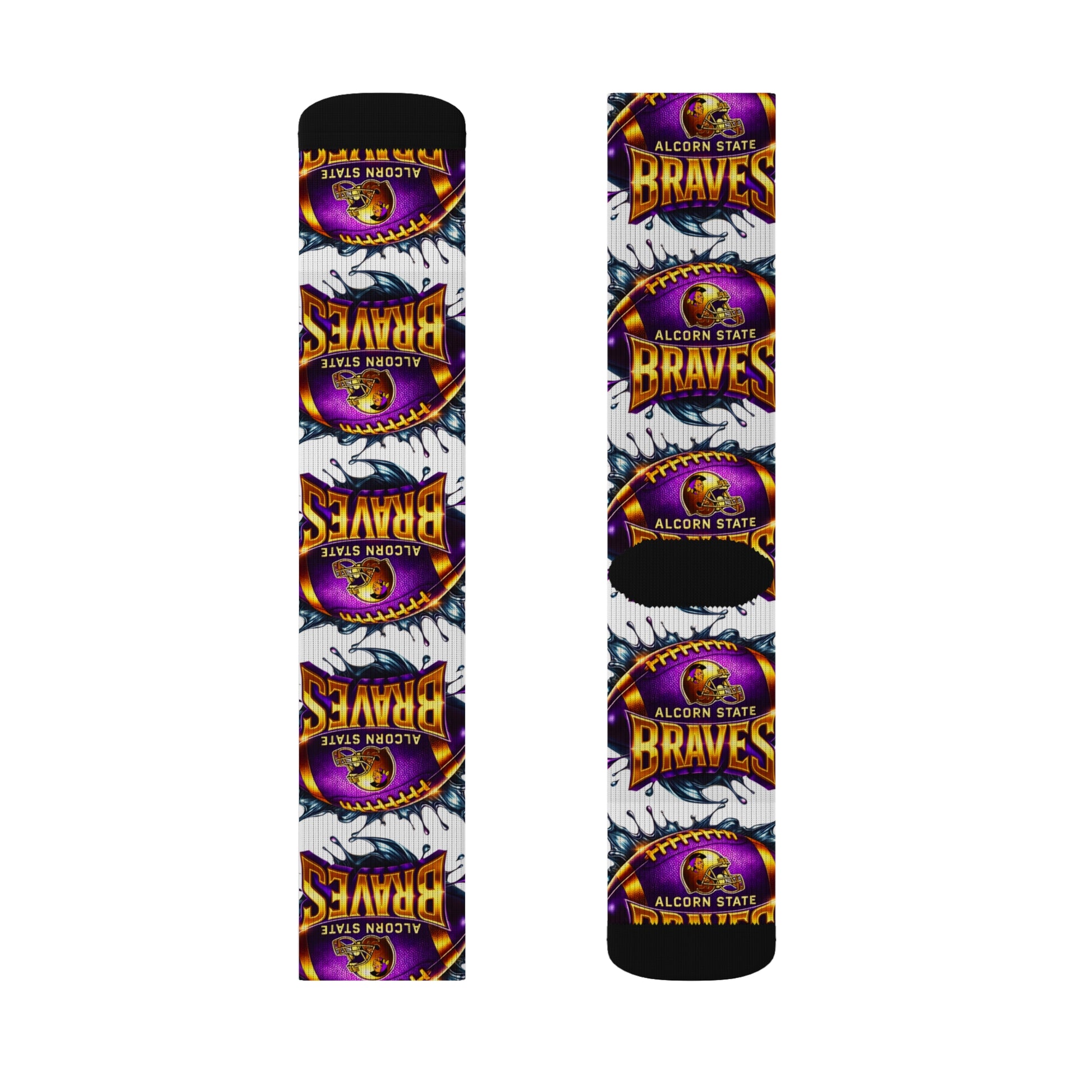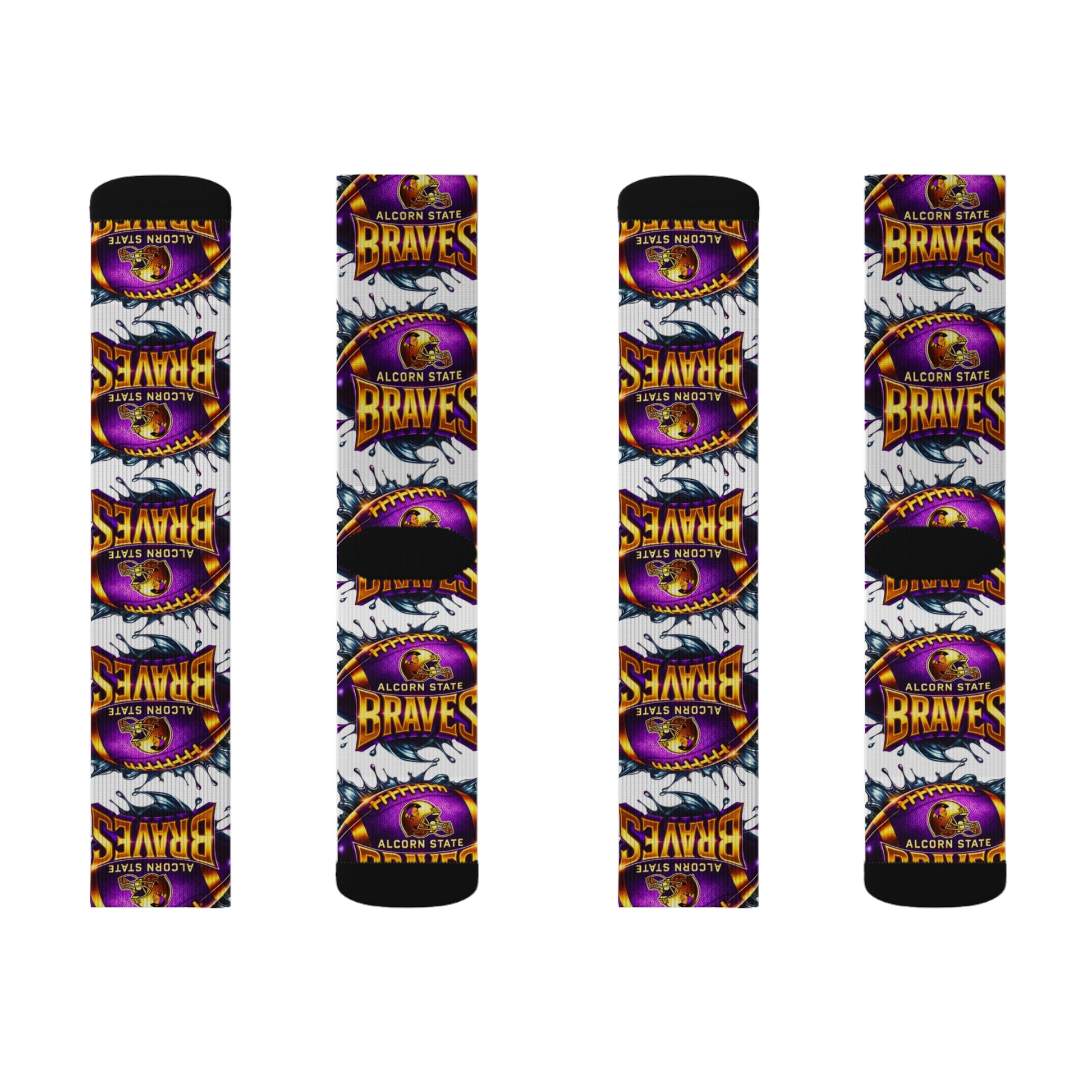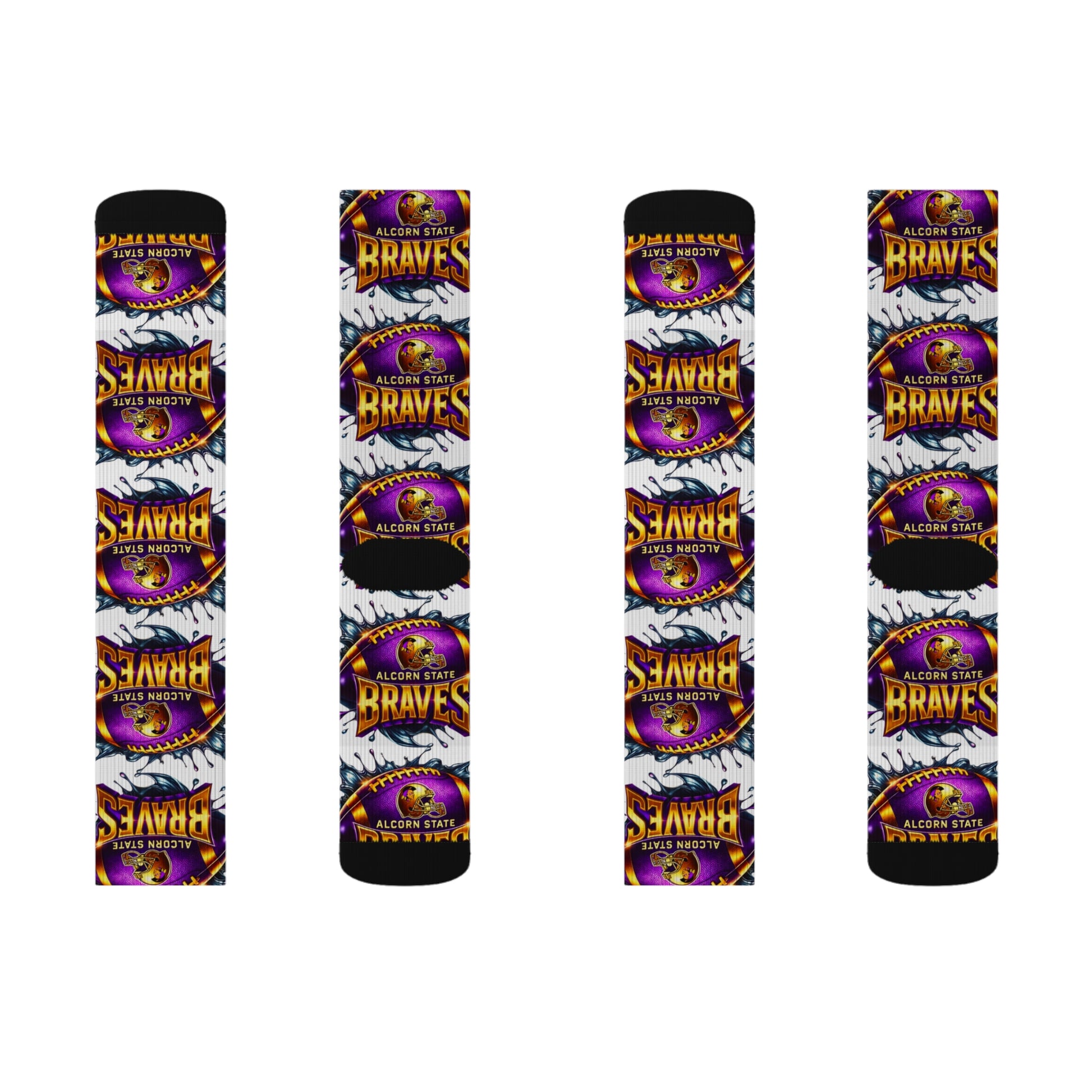 Alcorn State Braves Sublimation Socks, Custom Athletic Crew Socks, HBCU Pride Gift, Purple & Gold Fan Gear, Game Day Accessory, Gift for