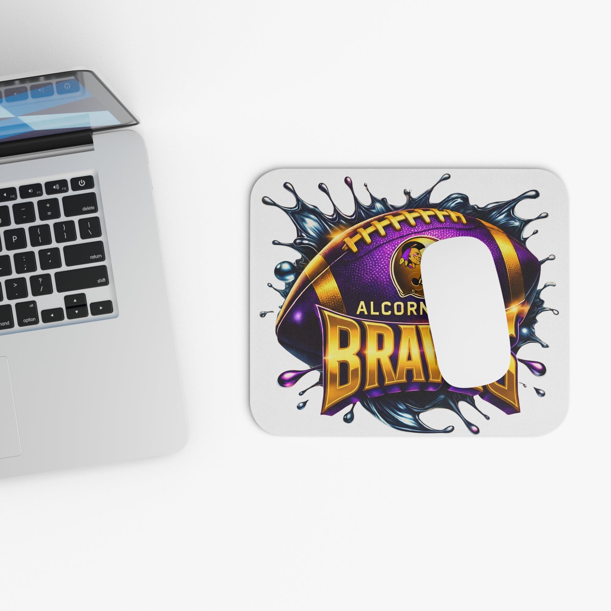 Get into the game with this Alcorn State Football Mouse Pad. Perfect for gamers, college sports fans, and office workers alike. This unique accessory in purple and gold colors adds a sporty vibe to any desk and shows off your love for the Alcorn Braves. Ideal for HBCU football enthusiasts and makes a great gift for holidays, birthdays, and special occasions. Product features - Full front decoration with bright and intense colors - Smooth surface for effortless mouse gliding and easy cleaning - Rubber base keeps the mouse pad firmly gripped to the desk - Rectangular shape for a consistent look - Durable high-density foam material with ultra-thin rubber base Care instructions - Use warm water and dish soap to clean spots off your pad. It's not necessary to soak the whole pad. For hard-to-clean spots use a soft-bristled brush.
