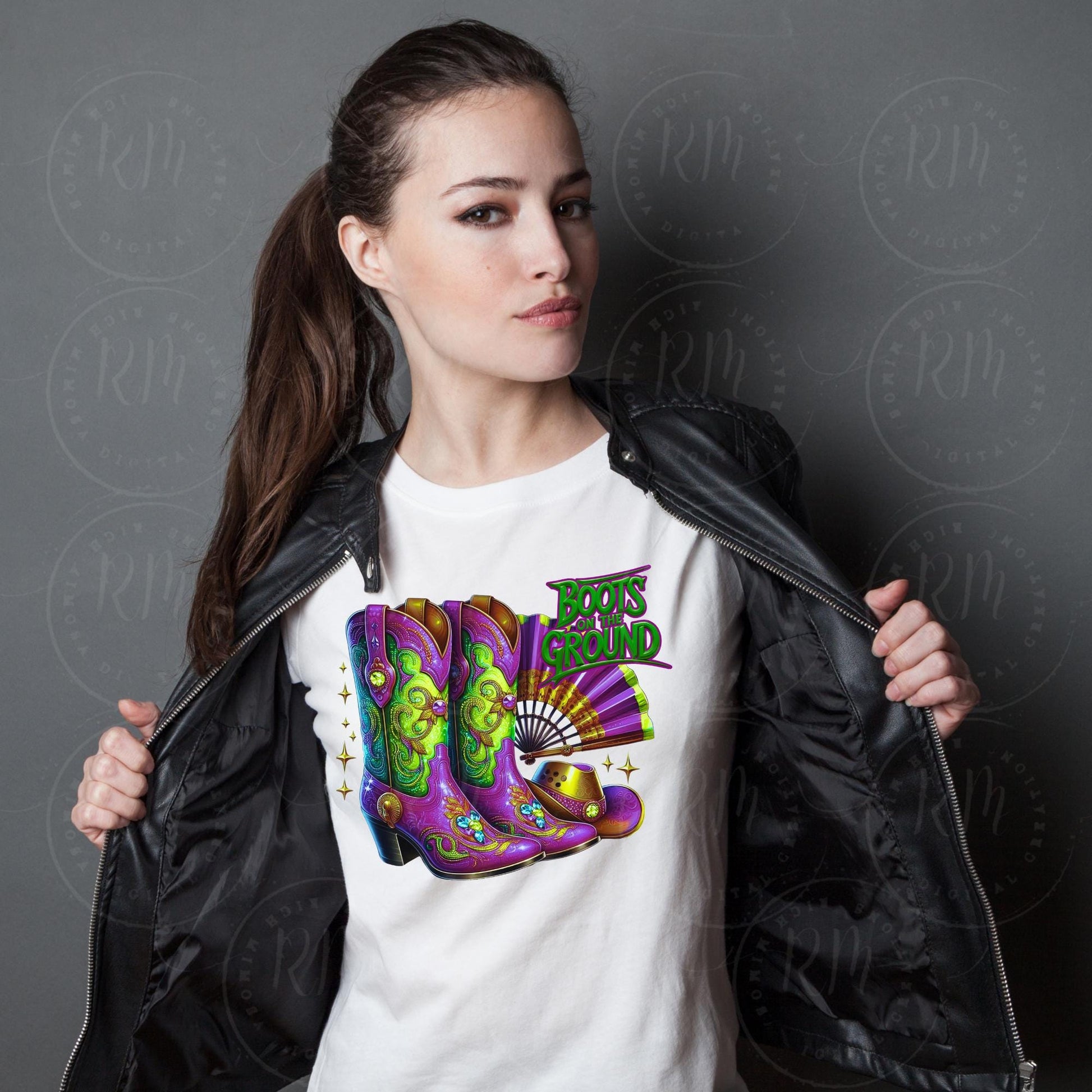 Boots on the Ground Clipart, Purple and Green Cowgirl Boots, Hat & Clack Fan Graphic Design, Unique Western Design, Artwork for Prints, Tees, DIYs