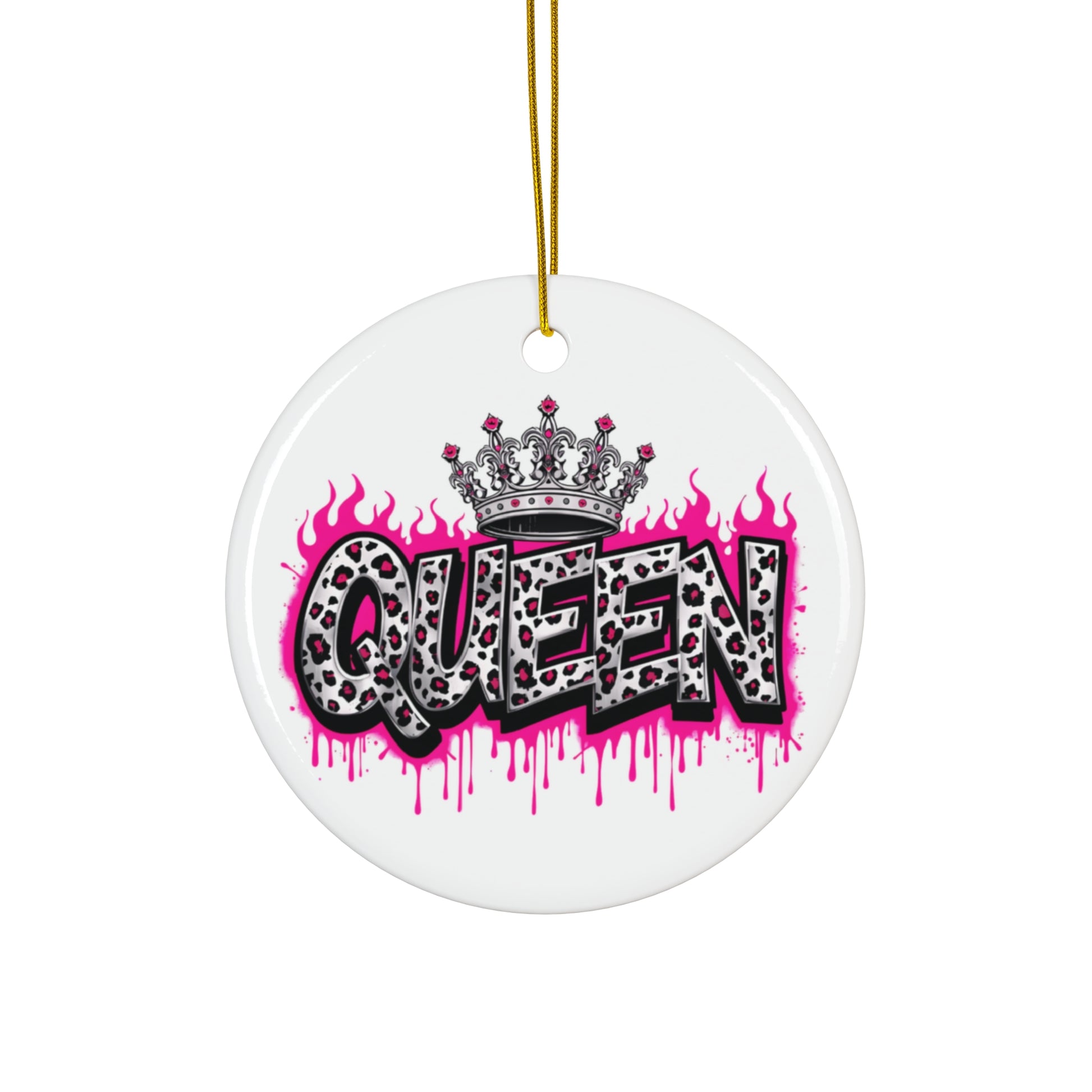 Elevate your holiday decor with our charming Ceramic Ornaments featuring the word QUEEN in a leopard graffiti print surrounded by pink fiery flames. Available in two delightful shapes—Snowflake and Circle—these ornaments are perfect for adding a personalized touch to your celebrations. Each piece boasts vibrant colors created with advanced printing techniques, ensuring every detail pops. The glossy finish adds a touch of elegance, making them a stunning addition to your tree or as decorative accents around your home. Ideal for gift-giving or creating lasting memories during the festive season, these ornaments are a lovely choice for anyone who cherishes holiday traditions. Perfect for Christmas, birthdays, or special celebrations, this product is designed to resonate with those who value unique decor and personal touches. Bring a joyful atmosphere to your home this season with these beautiful ornaments!
