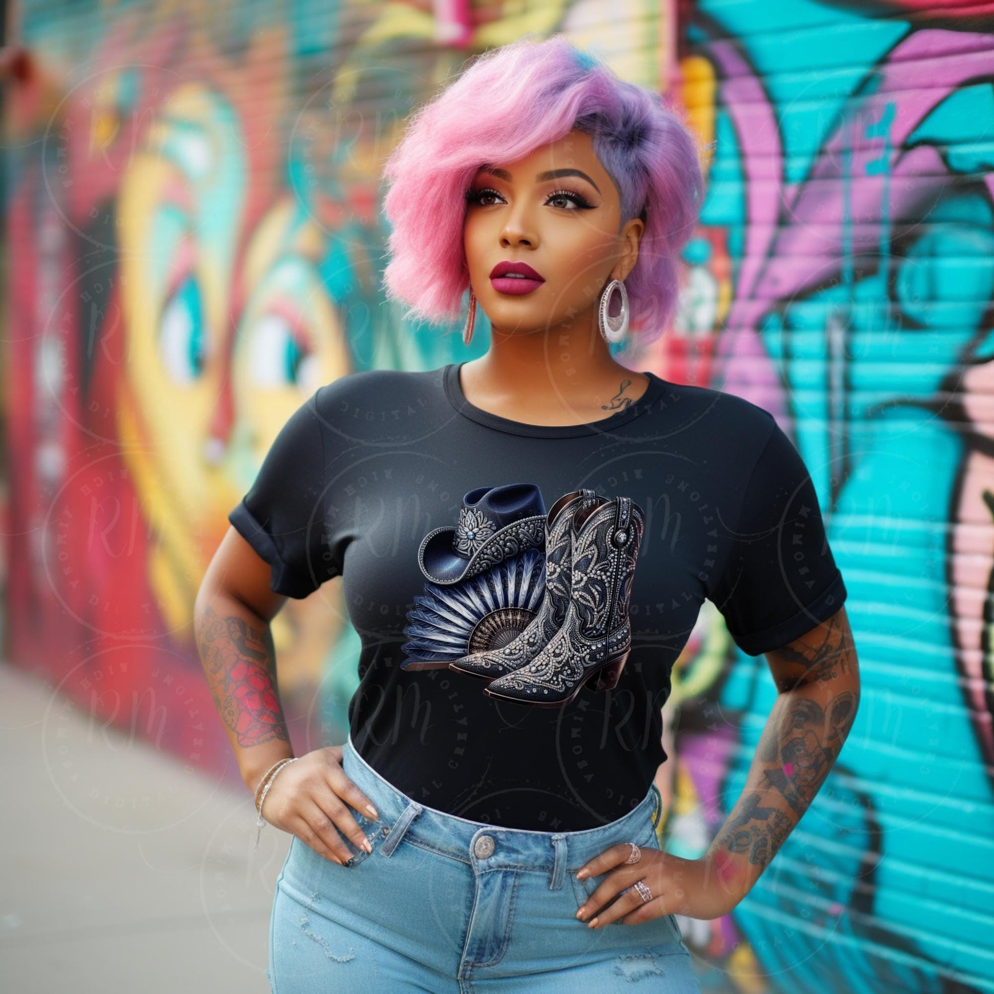 Cowgirl Boots PNG Clipart: Western Hat & Fan Graphic Design (Digital Download