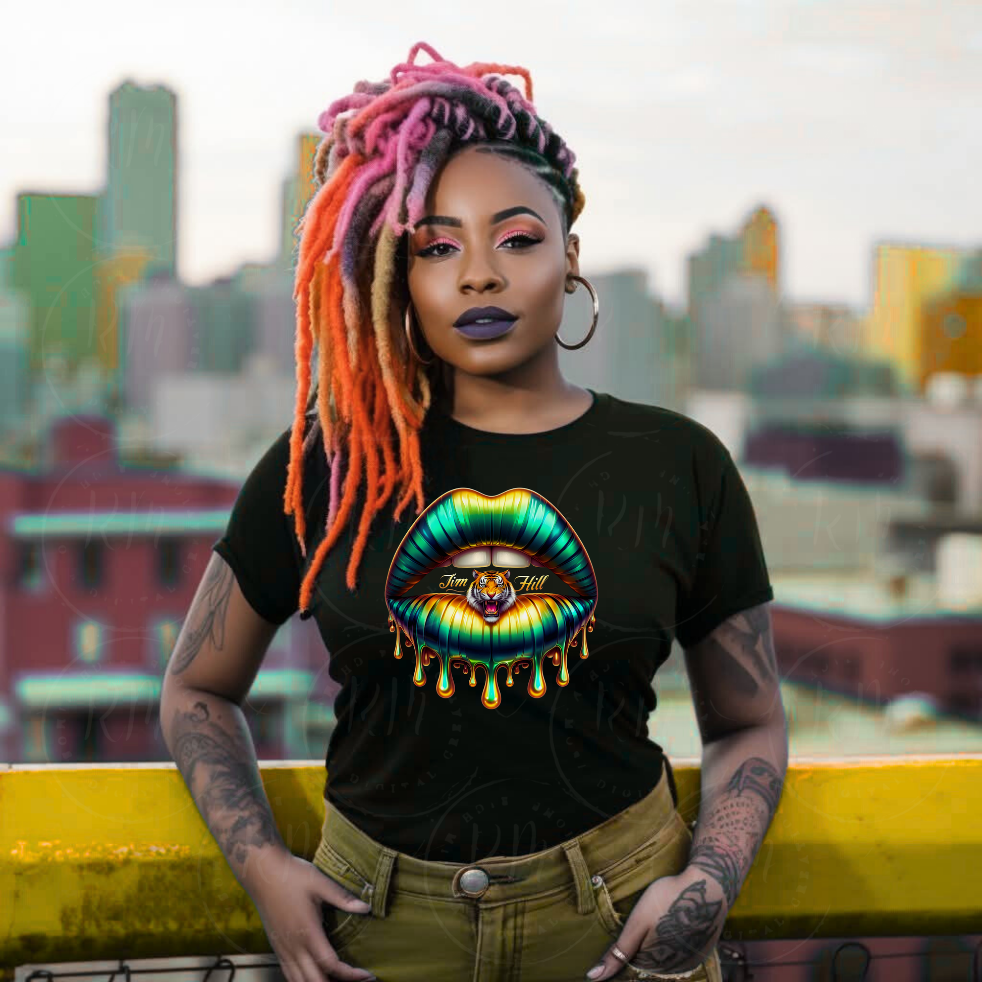 Jim Hill High School Tiger Lips PNG | Jackson MS Mascot Clipart | Green Gold Dripping Lips Sublimation Design for Shirts, Mugs, Totes
