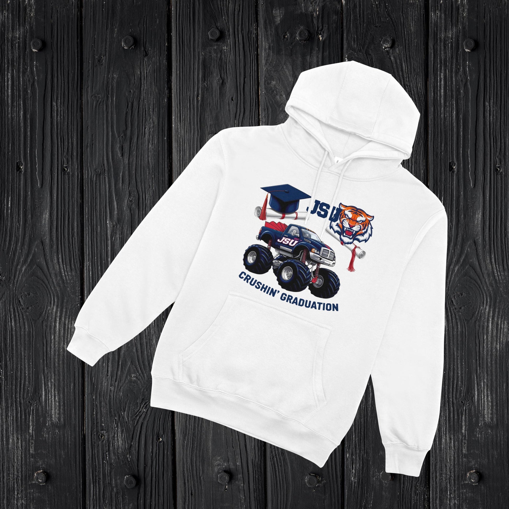 Celebrate your achievement with our vibrant 2025 JSU Grad Clipart featuring the Crushin' Graduation Monster Truck—a unique gift that embodies the spirit of Jackson State University! Perfect for creating unforgettable senior apparel and decorations, this lively design will inspire joy and pride as you commemorate your journey; grab yours now and show off your JSU pride!
