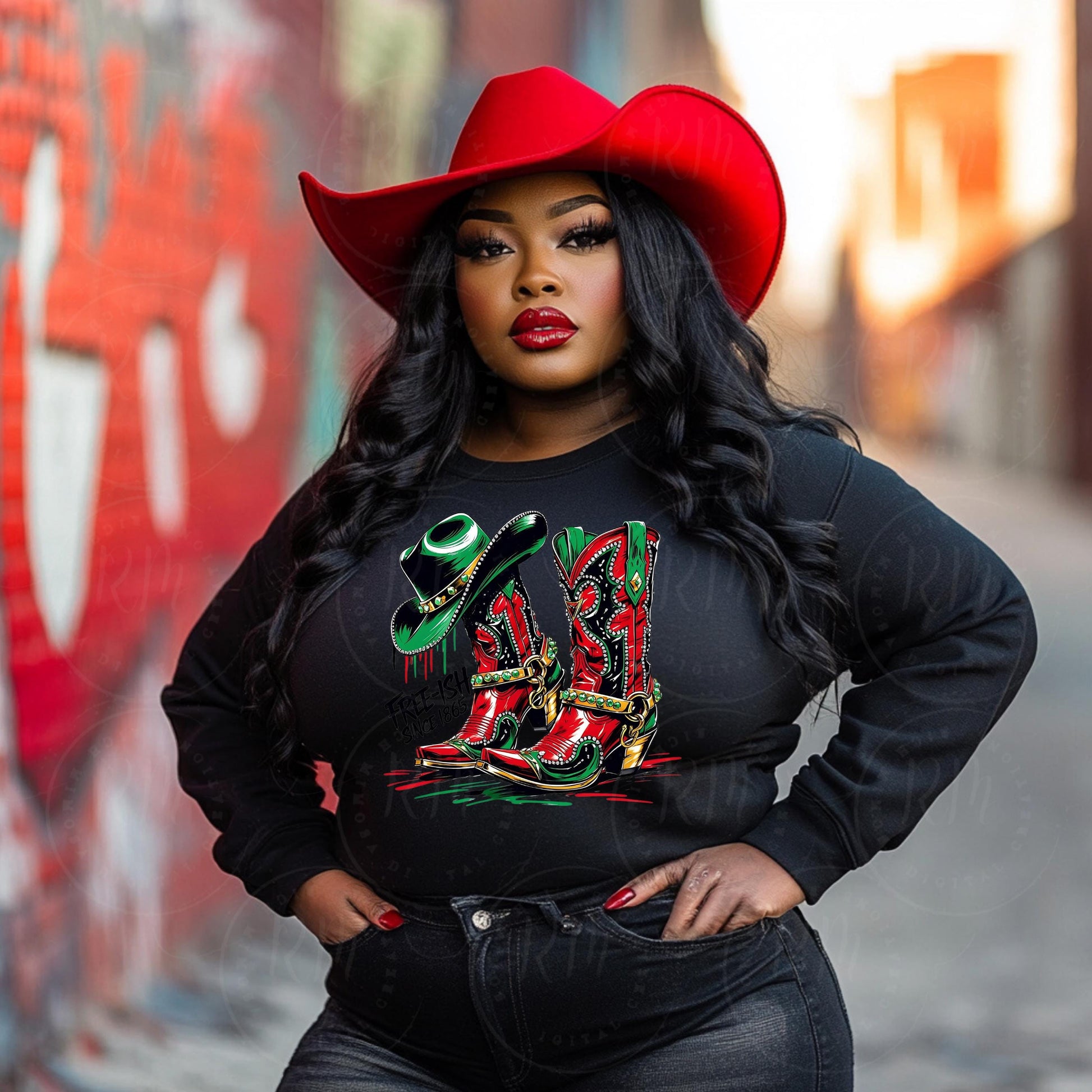 Celebrate heritage and empowerment with this dynamic Free-ish since 1865... Juneteenth digital clipart, featuring a bold cowboy boots and hat. Perfect for creating memorable designs, this high-quality digital image stands out with its vibrant detail and culturally rich symbolism, setting your projects apart.