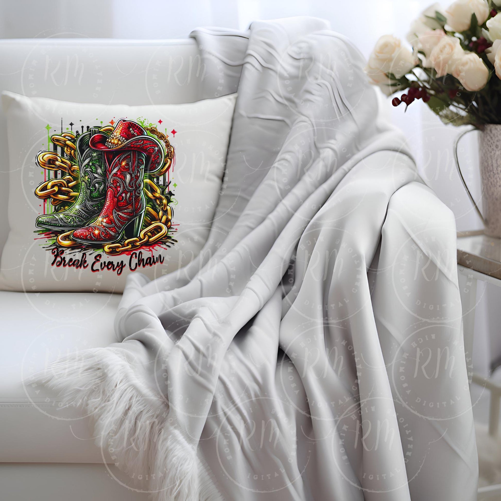Celebrate heritage and empowerment with this dynamic "Break Every Chain" Juneteenth digital clipart, featuring a bold cowboy boots and hat. Perfect for creating memorable designs, this high-quality digital image stands out with its vibrant detail and culturally rich symbolism, setting your projects apart.