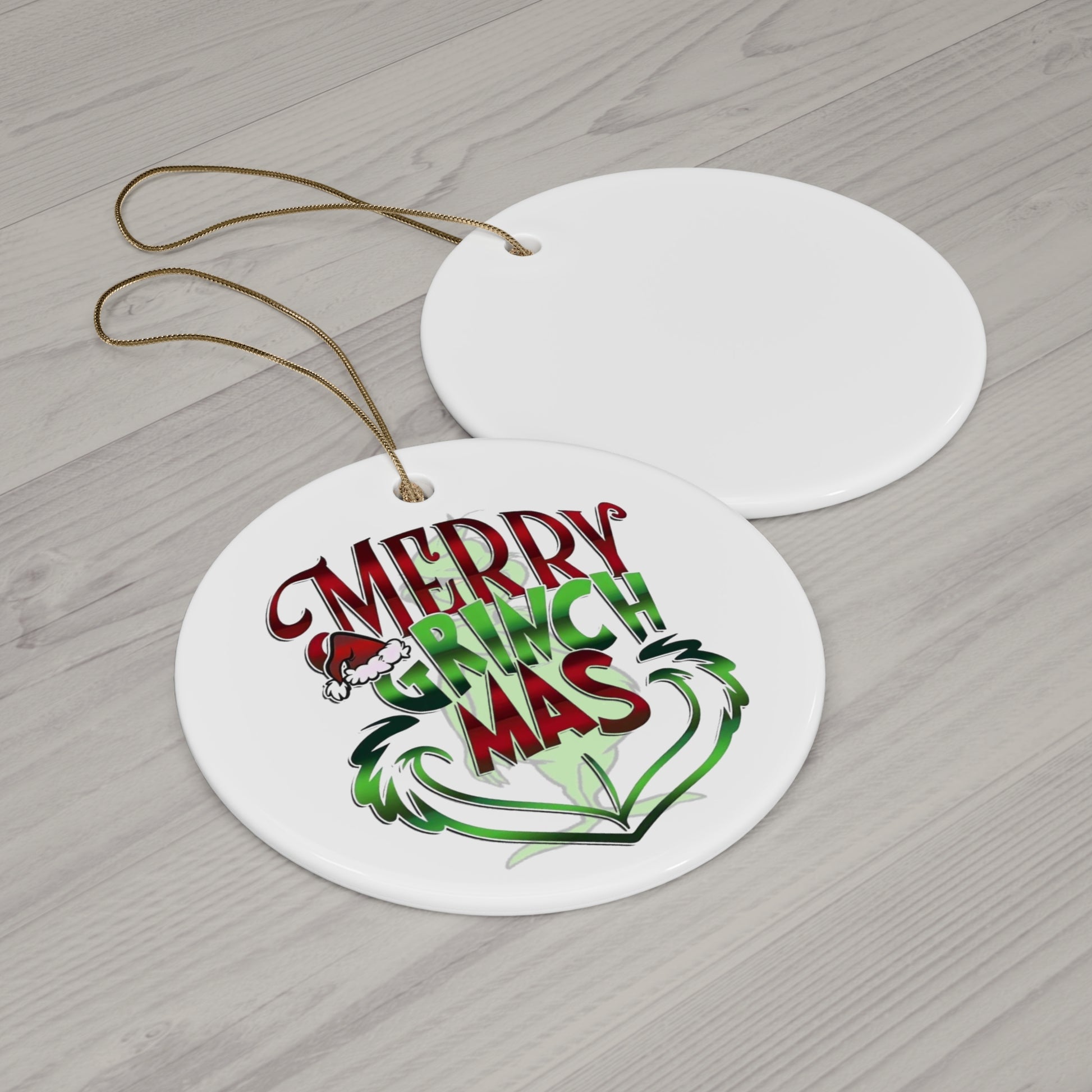 Merry Grinchmas Ornament, Grinch Ornament, Snowflake Ornament, Circle Christmas Ornament, Ceramic Ornaments, Holiday Decor