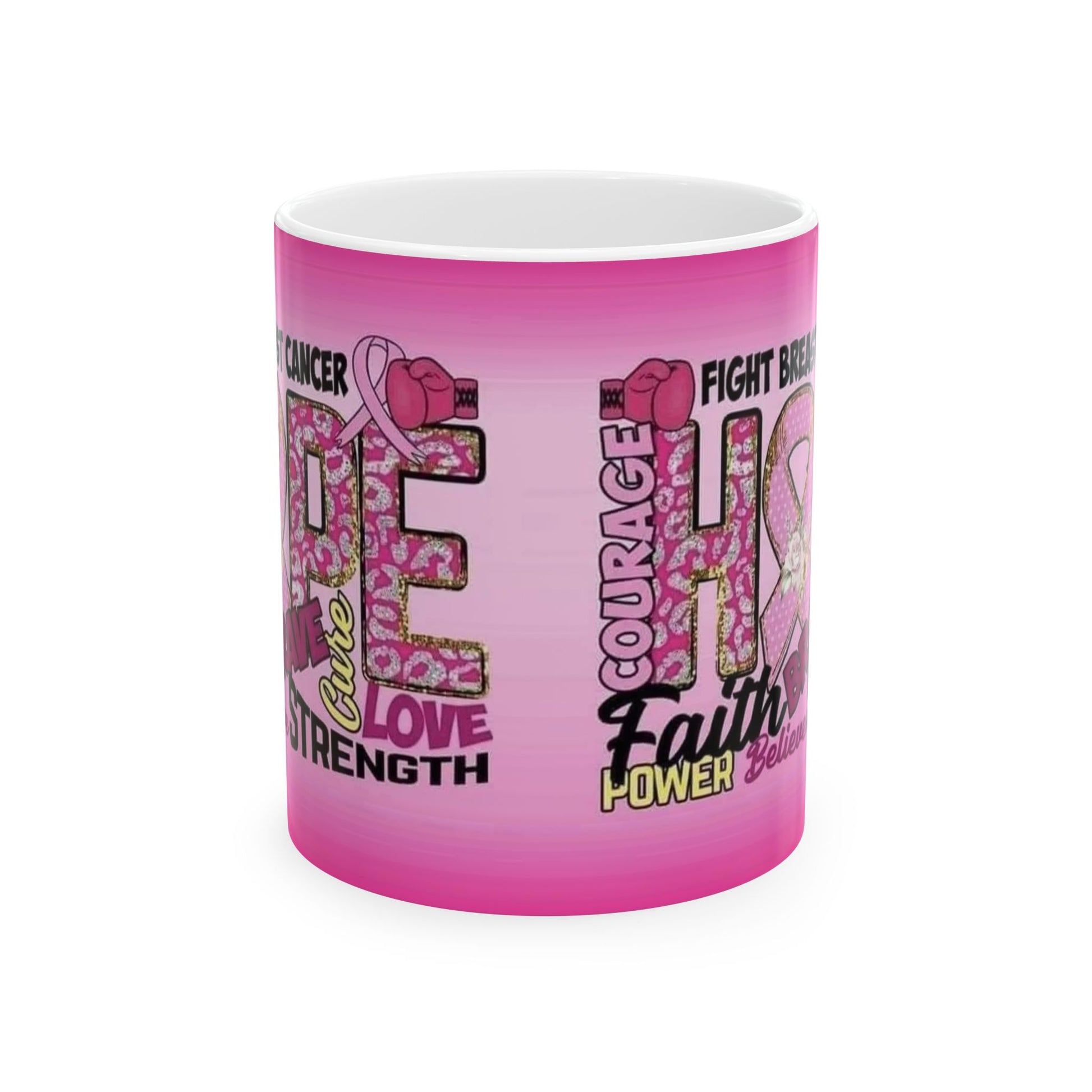 This Pink Fight Breast Cancer Ceramic Mug is a beautiful and meaningful addition to your daily routine. Show your support for breast cancer awareness with this vibrant and glossy mug. Perfect for sipping your morning coffee or tea, this mug is great for anyone looking to make a statement and support a cause. Ideal for breast cancer survivors, fighters, supporters, or anyone touched by this cause. Perfect for Breast Cancer Awareness Month, fundraisers, support groups, or any day you want to show your support.