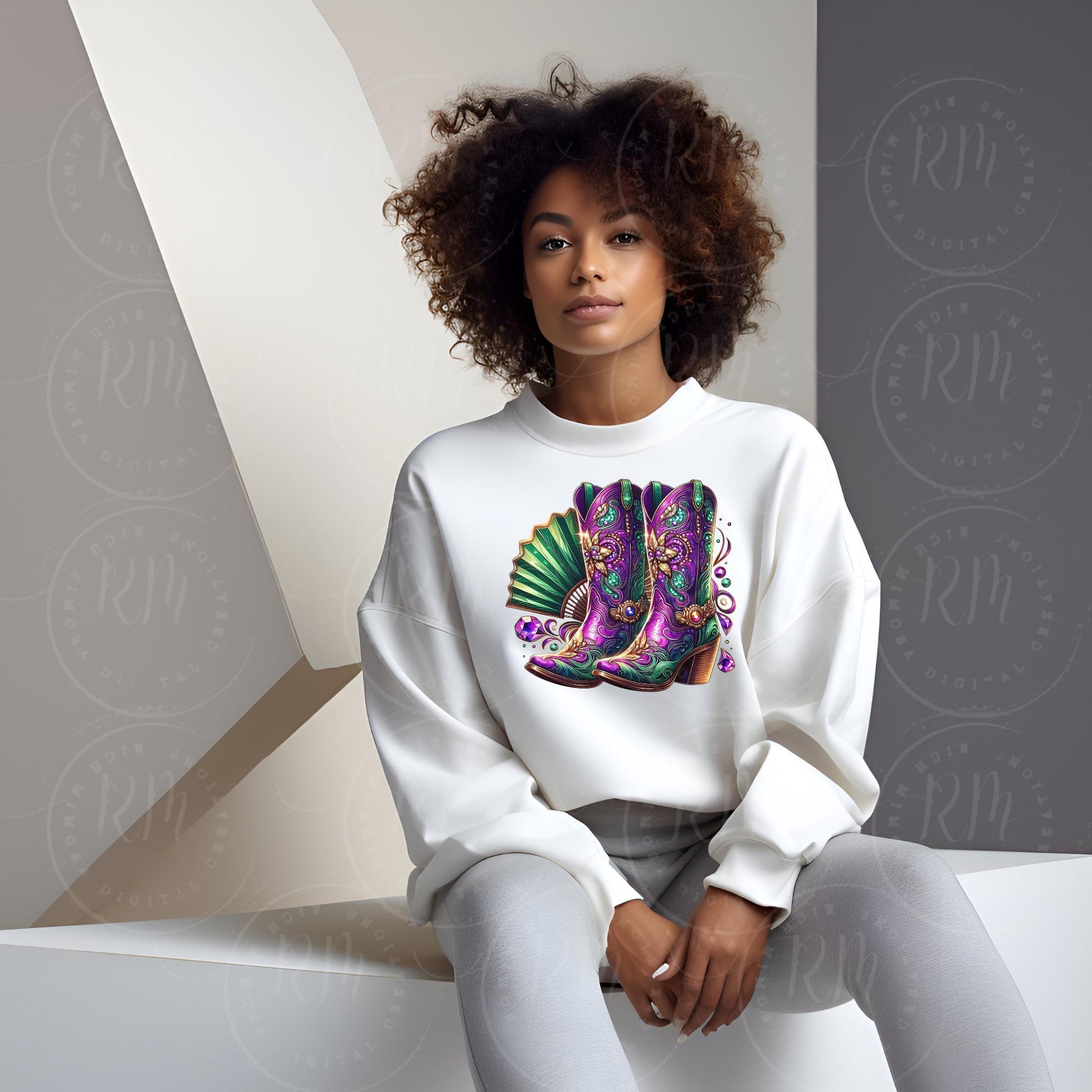 Rhinestone Cowgirl Boots PNG: Purple & Green Western Clipart (Digital Download)
