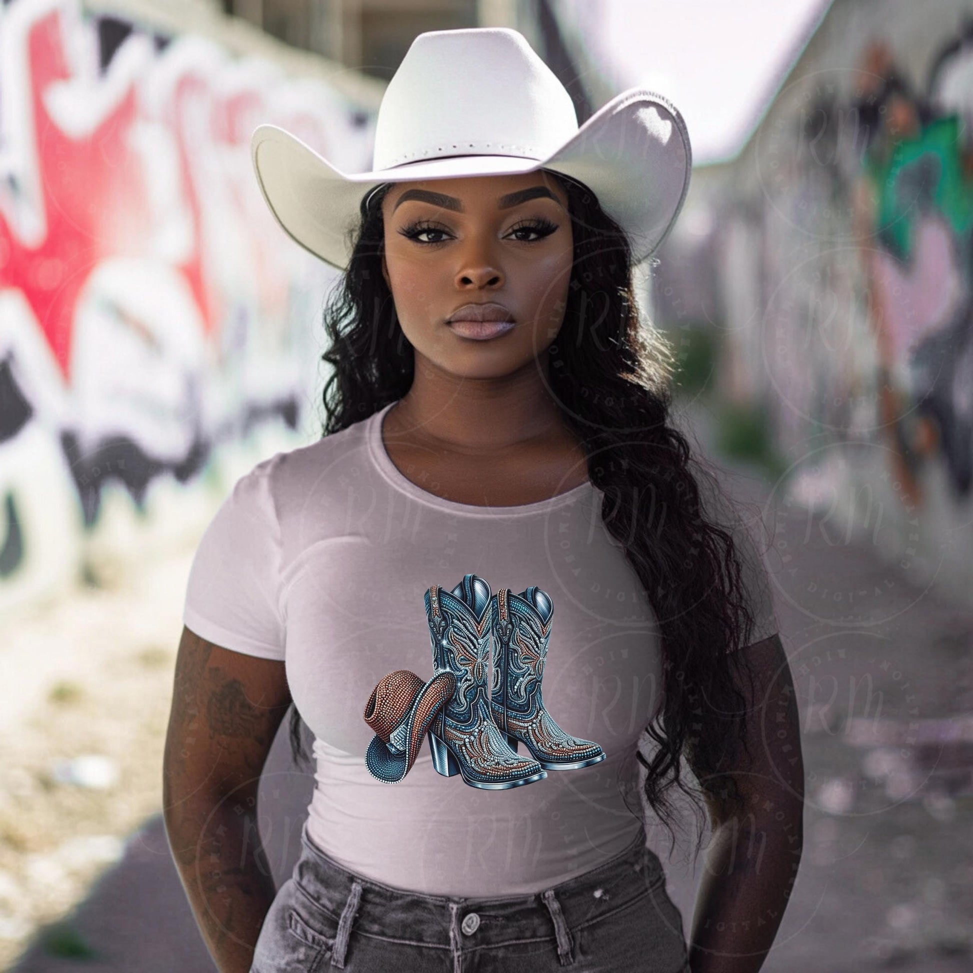 Rhinestone Cowgirl Boots PNG: Western Graphic Design Clipart (Digital Download