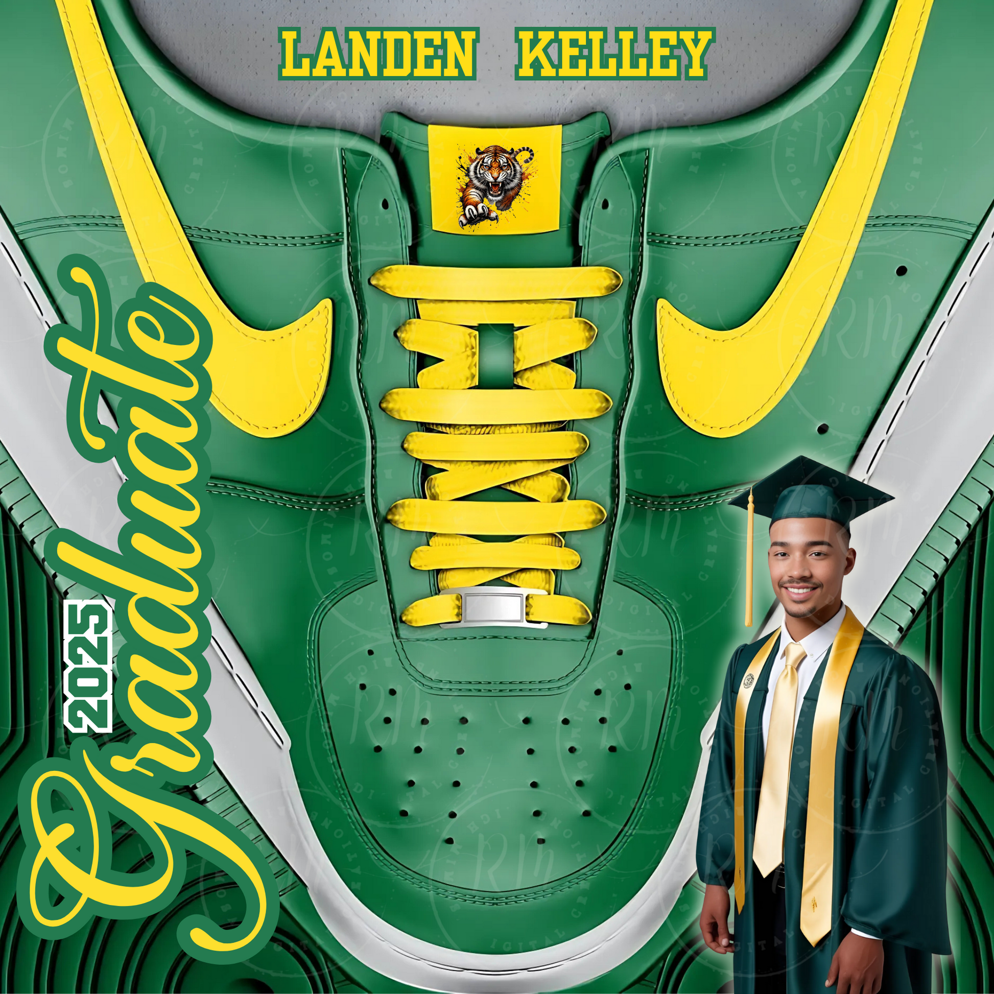 Celebrate your graduation in style with our Shoelace Graduation Editable Green and Yellow Canva Tumbler Template! Easily personalize your tumbler with this unique design, perfect for adding a touch of personality to your special day. Show off your accomplishment with every sip and make memories that will last a lifetime.